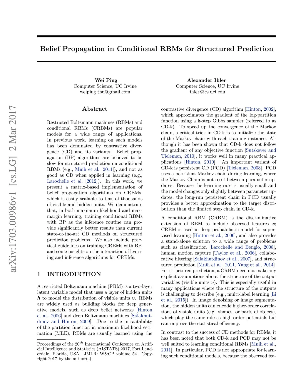 Belief Propagation in Conditional RBMs for Structured Prediction