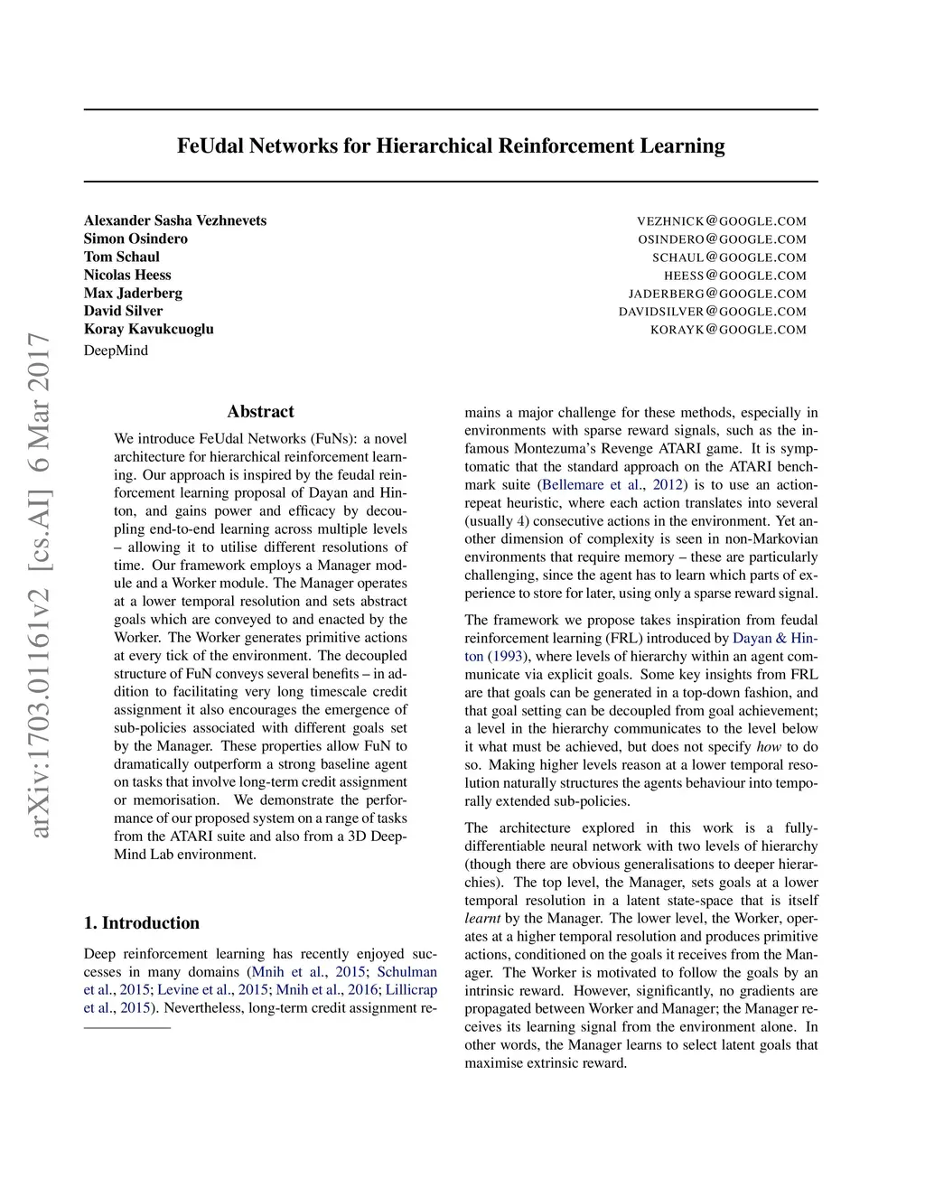 FeUdal Networks for Hierarchical Reinforcement Learning