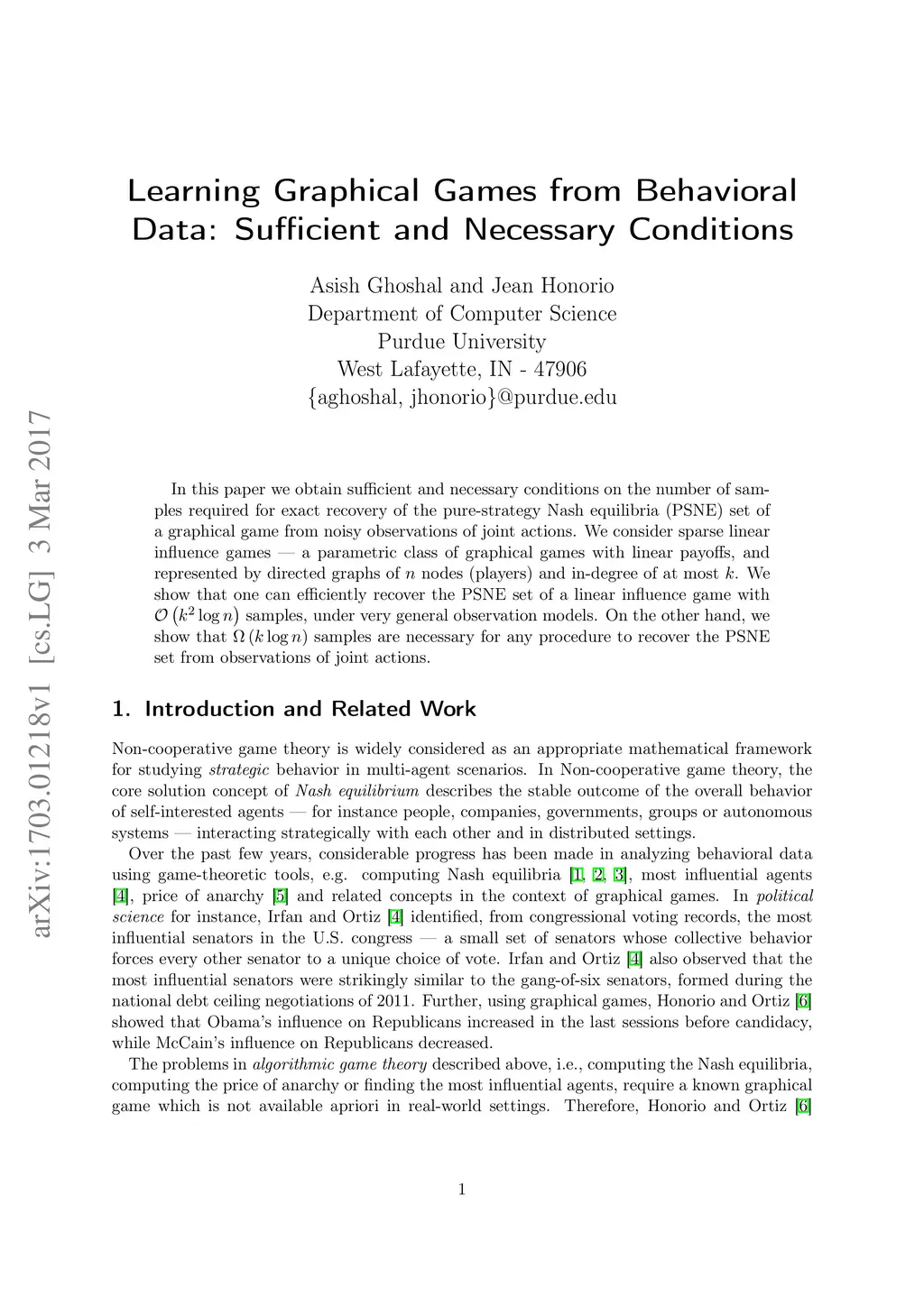 Learning Graphical Games from Behavioral Data: Sufficient and Necessary
