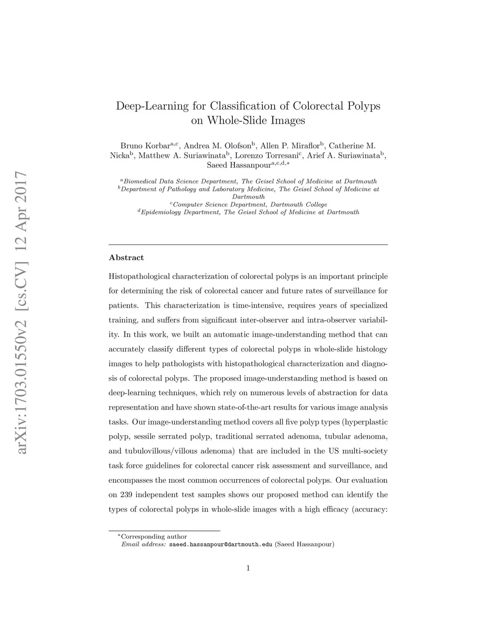 Deep-Learning for Classification of Colorectal Polyps on Whole-Slide