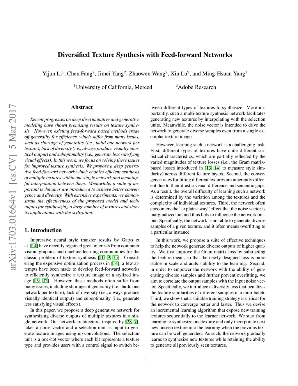 Diversified Texture Synthesis with Feed-forward Networks