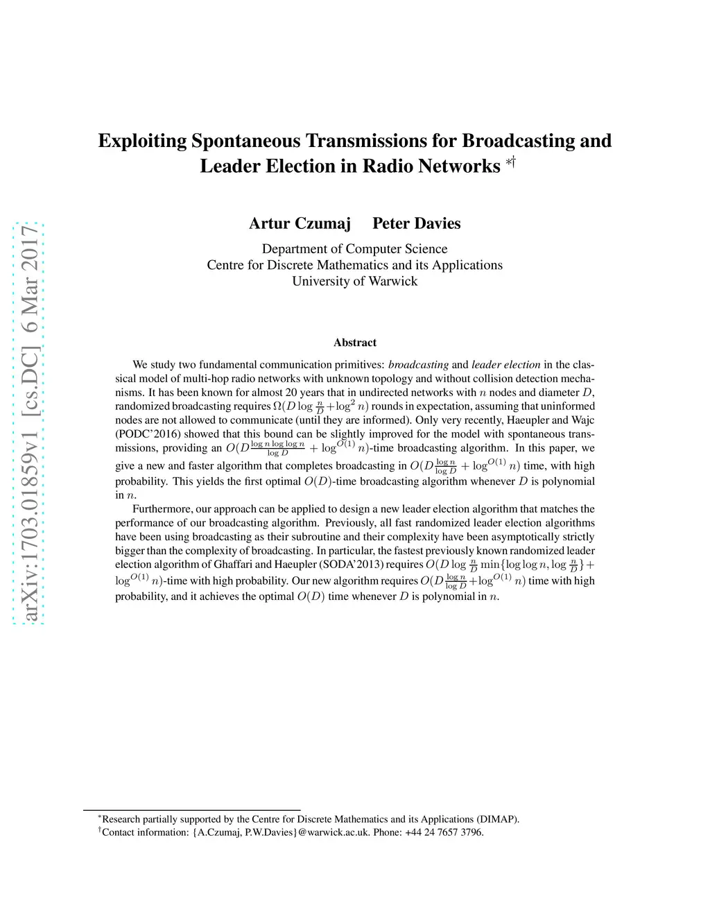 Exploiting Spontaneous Transmissions for Broadcasting and Leader