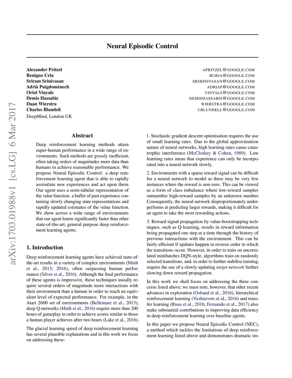 Neural Episodic Control