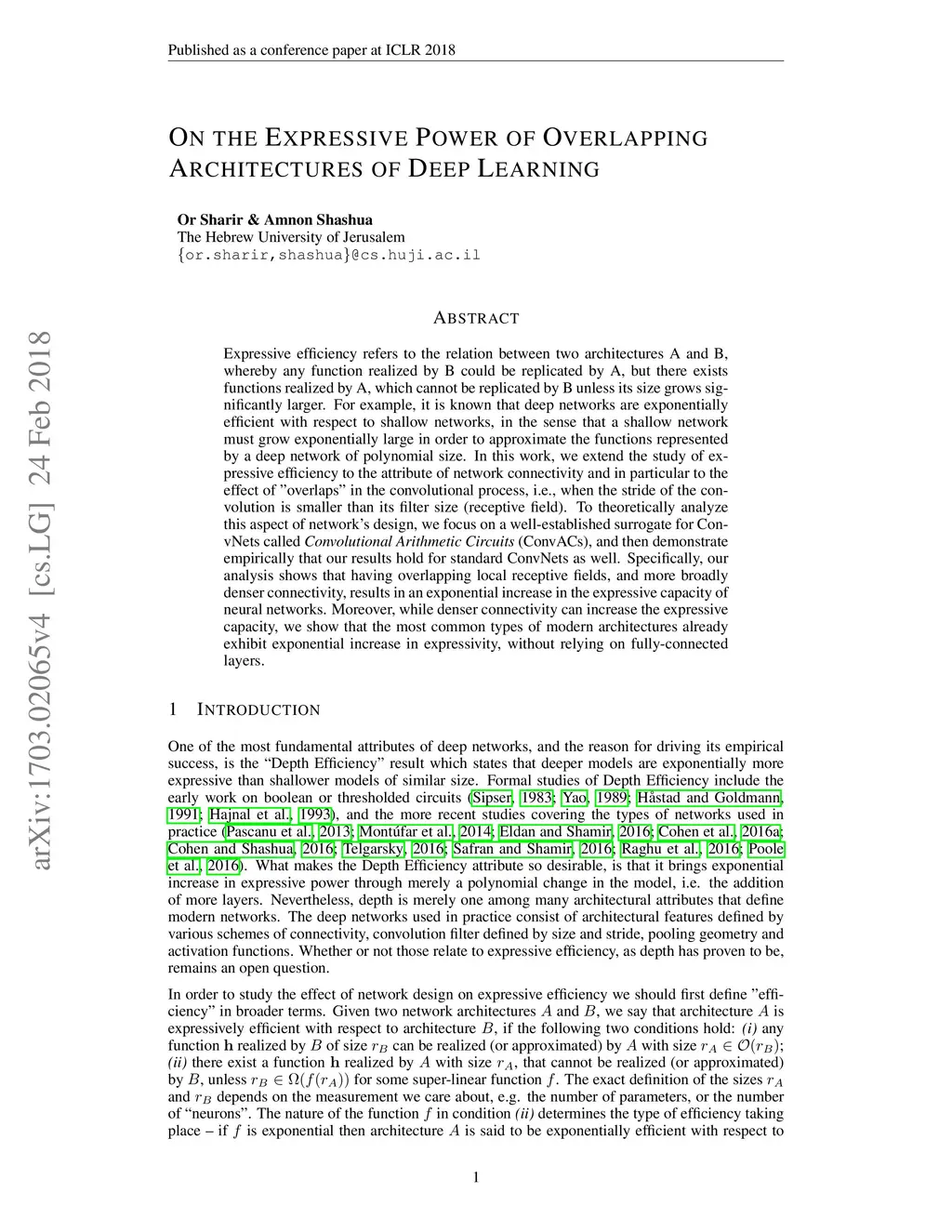 On the Expressive Power of Overlapping Architectures of Deep Learning