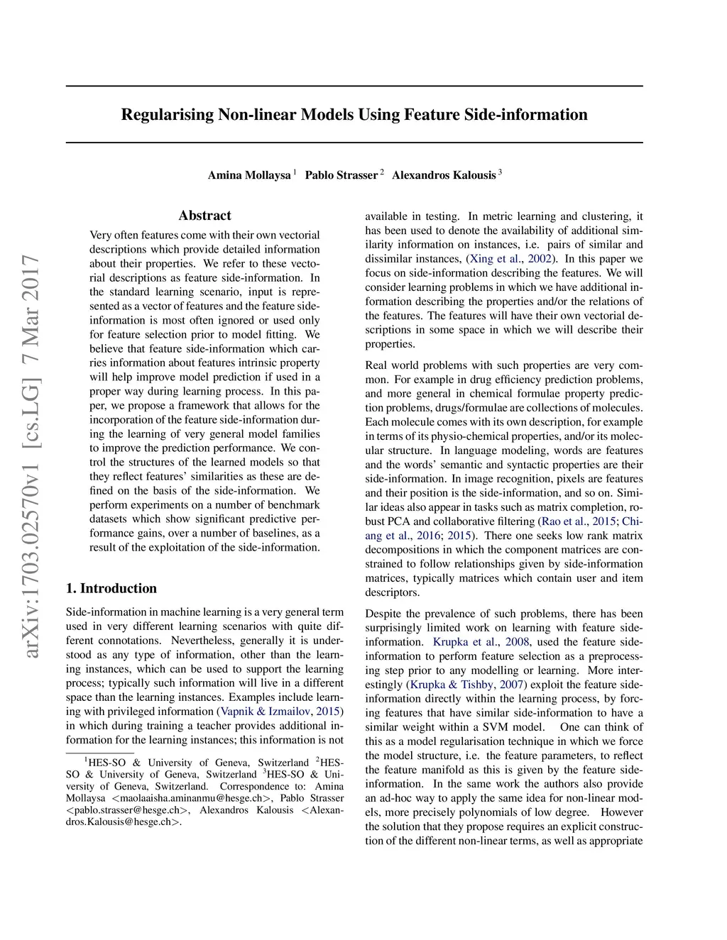 Regularising Non-linear Models Using Feature Side-information