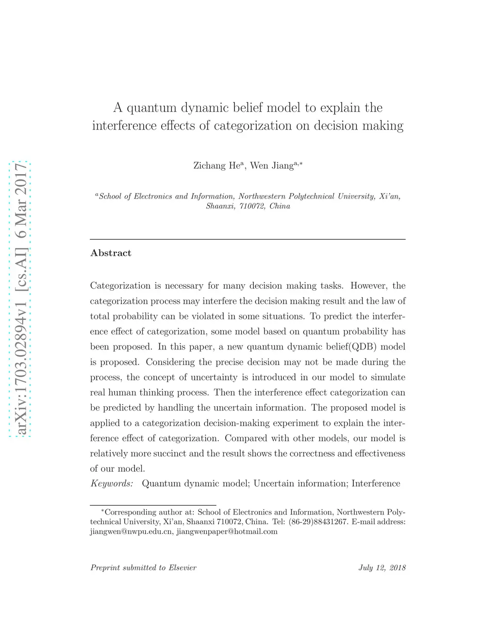 Categorization is necessary for many decision making tasks. However, the categorization process may interfere the decision making result and the law of total probability can be violated in some situations. To predict the interference effect of categorization, some model based on quantum probability has been proposed. In this paper, a new quantum dynamic belief (QDB) model is proposed. Considering the precise decision may not be made during the process, the concept of uncertainty is introduced in our model to simulate real human thinking process. Then the interference effect categorization can be predicted by handling the uncertain information. The proposed model is applied to a categorization decision-making experiment to explain the interference effect of categorization. Compared with other models, our model is relatively more succinct and the result shows the correctness and effectiveness of our model.