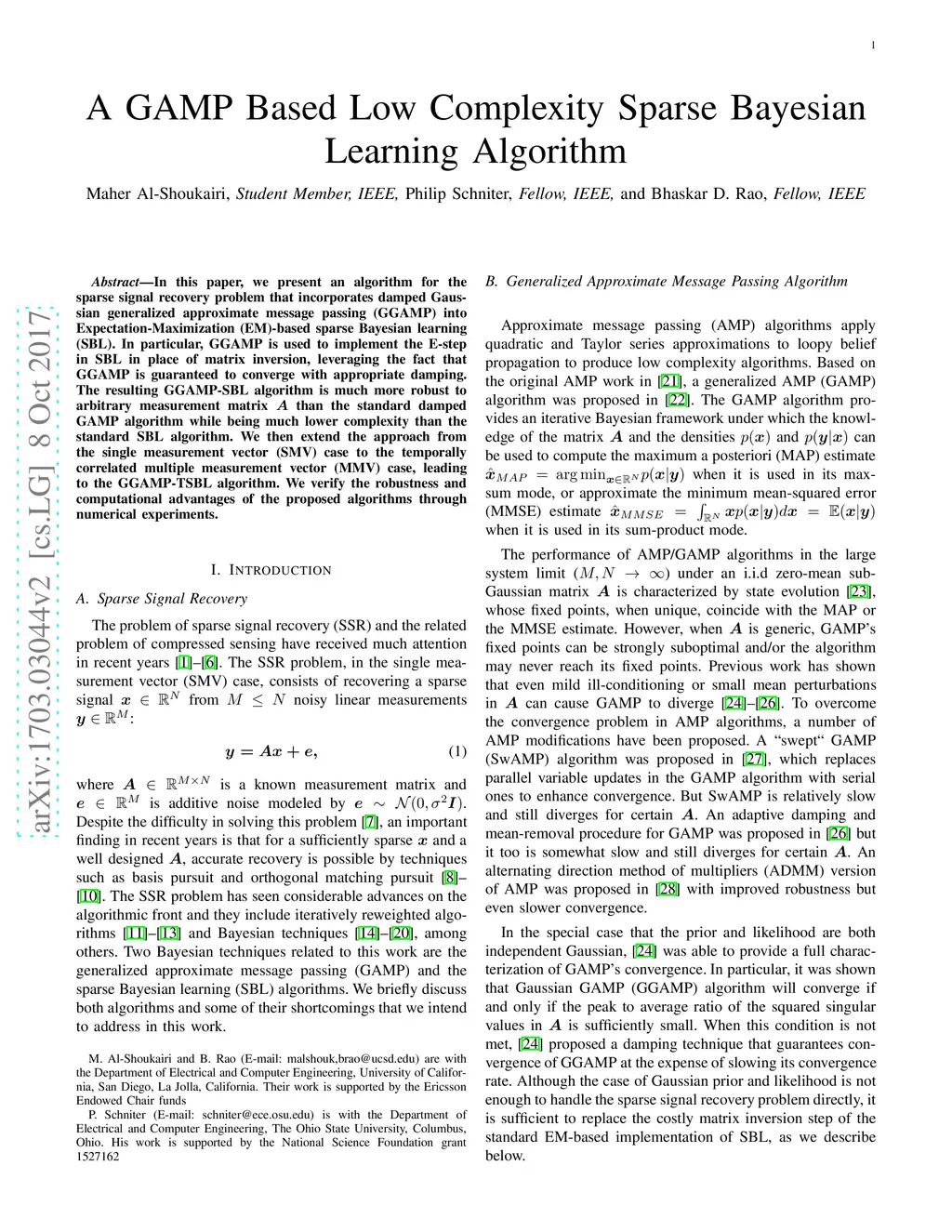 A GAMP Based Low Complexity Sparse Bayesian Learning Algorithm