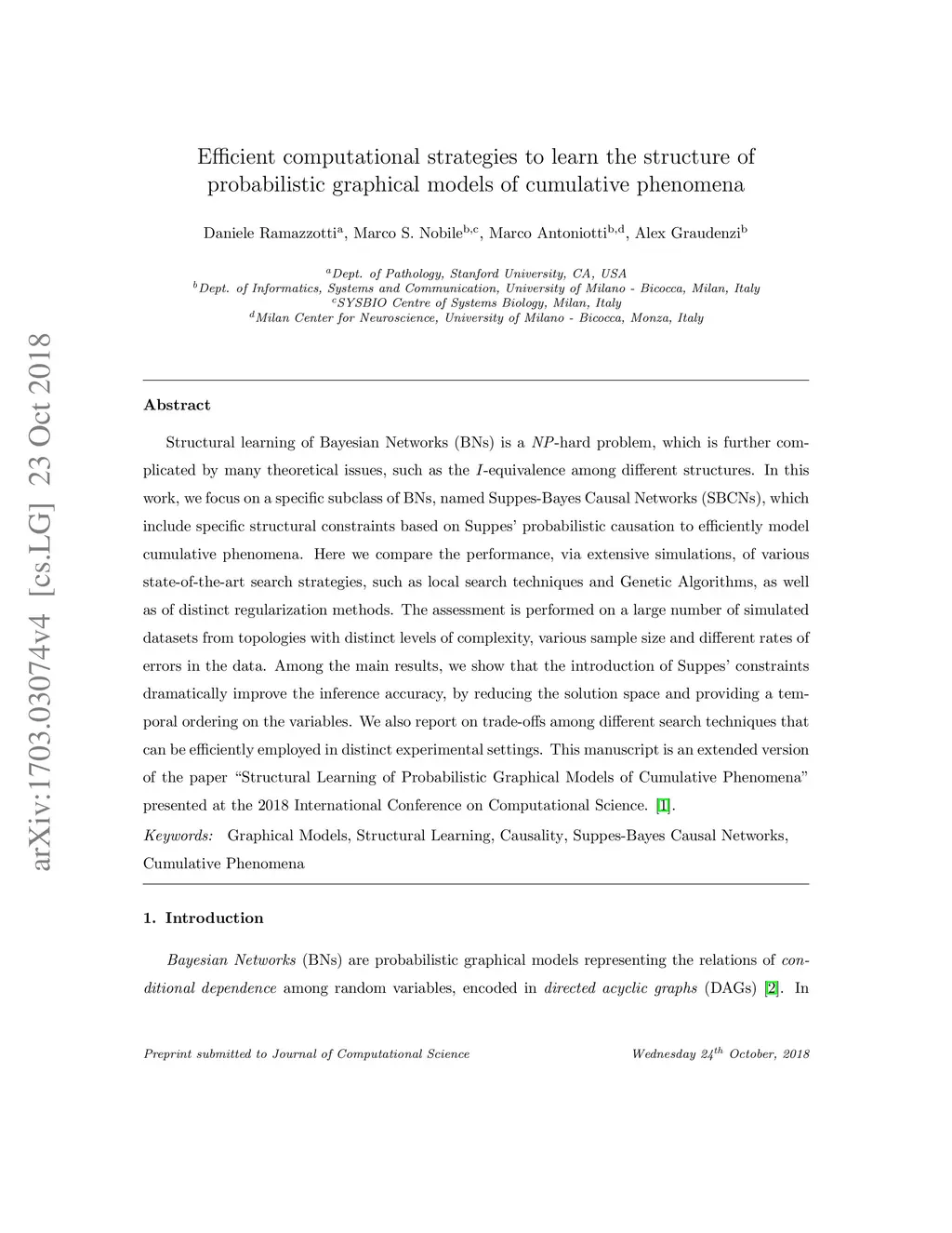 Structural learning of Bayesian Networks (BNs) is a NP-hard problem, which is further complicated by many theoretical issues, such as the I-equivalence among different structures. In this work, we focus on a specific subclass of BNs, named Suppes-Bayes Causal Networks (SBCNs), which include specific structural constraints based on Suppes' probabilistic causation to efficiently model cumulative phenomena. Here we compare the performance, via extensive simulations, of various state-of-the-art search strategies, such as local search techniques and Genetic Algorithms, as well as of distinct regularization methods. The assessment is performed on a large number of simulated datasets from topologies with distinct levels of complexity, various sample size and different rates of errors in the data. Among the main results, we show that the introduction of Suppes' constraints dramatically improve the inference accuracy, by reducing the solution space and providing a temporal ordering on the variables. We also report on trade-offs among different search techniques that can be efficiently employed in distinct experimental settings. This manuscript is an extended version of the paper "Structural Learning of Probabilistic Graphical Models of Cumulative Phenomena" presented at the 2018 International Conference on Computational Science.