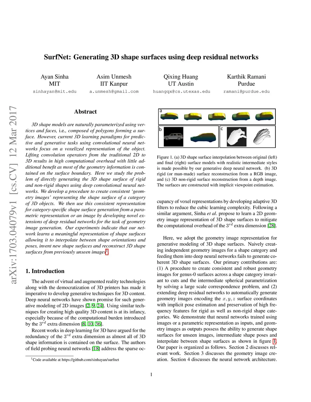 SurfNet: Generating 3D shape surfaces using deep residual networks