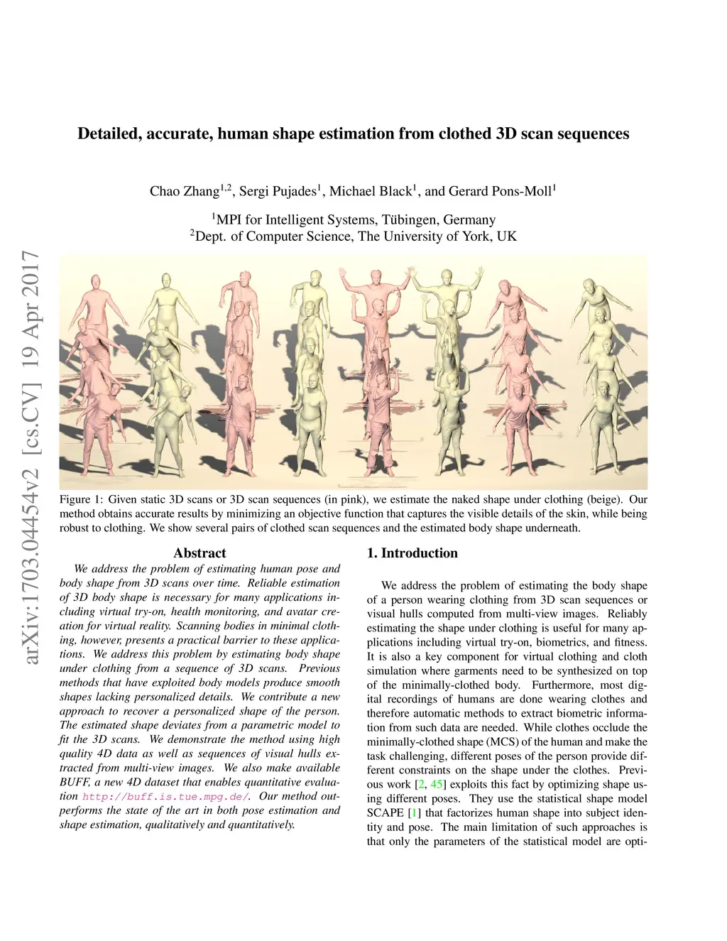 Detailed, accurate, human shape estimation from clothed 3D scan