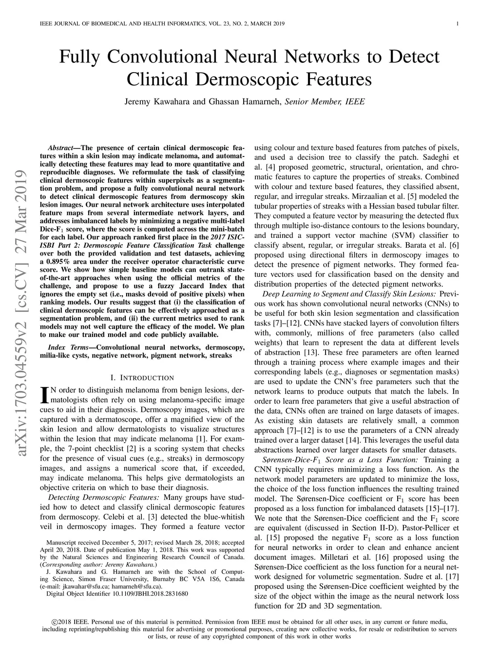 Fully Convolutional Neural Networks to Detect Clinical Dermoscopic