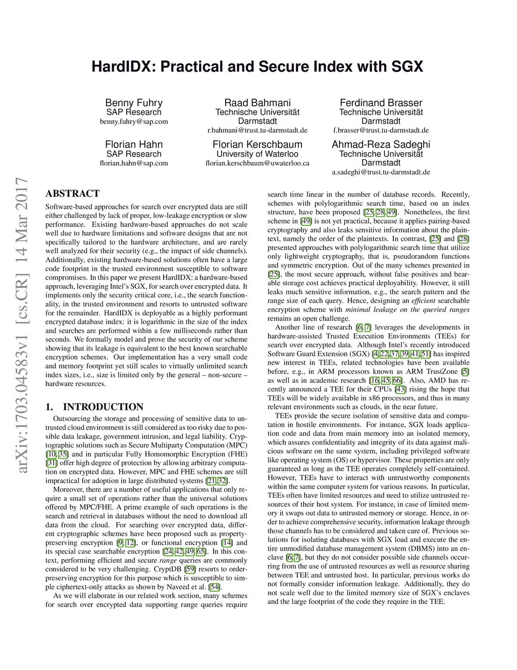 HardIDX: Practical and Secure Index with SGX