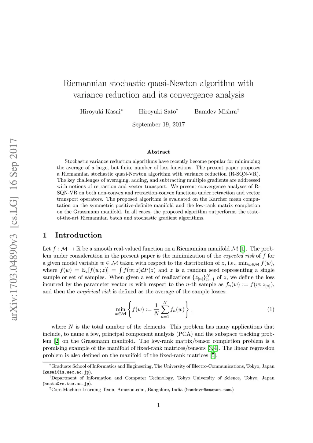 Riemannian stochastic quasi-Newton algorithm with variance reduction and