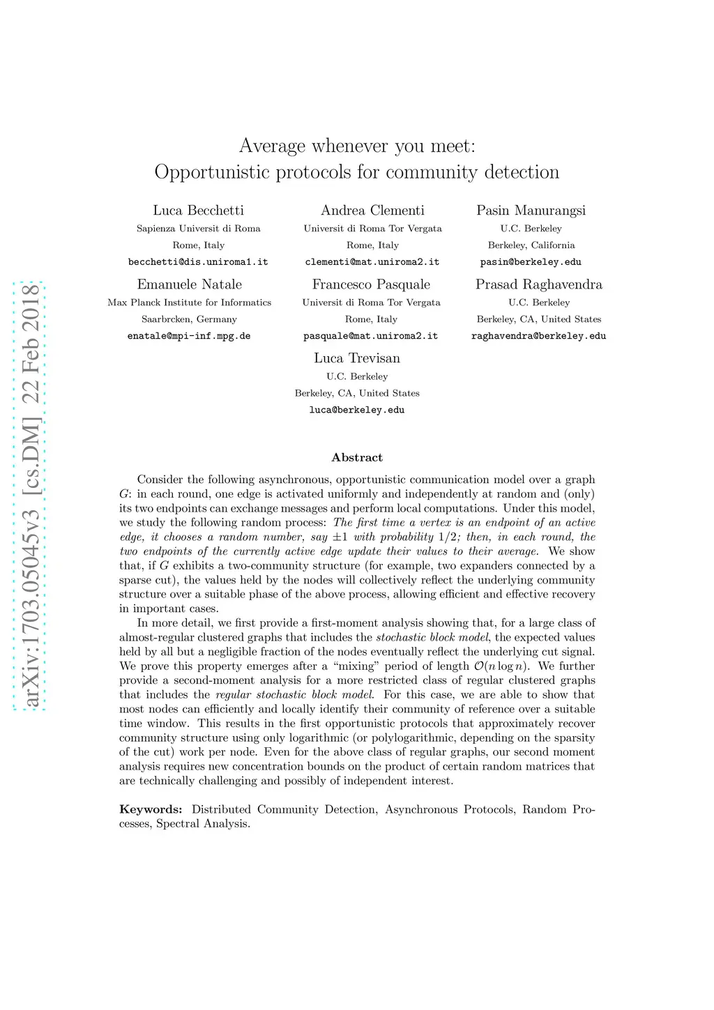 Consider the following probabilistic process on a graph . After initially labeling each vertex by a real number, say randomly chosen in , we repeatedly pick a random edge and replace the values of its endpoints by their average. Suppose the process is run on a graph exhibiting a community structure, such as two expanders joined by a sparse cut: {\em is there a phase of the process, in which its state reflects the underlying community structure? Moreover, can nodes learn that structure via a local procedure?} We answer the first question in the affirmative for a class of regular clustered graphs. Addressing the question above (in this restricted class as well) requires studying the concentration of the averaging process around its expectation. In turn, this calls for a deeper understanding of concentration properties of the product of certain random matrices around its expectation. These properties (albeit in different flavors) emerge both in the regime in which the sparsity of the cut is (with constant expansion within each community), and when the sparsity is constant. The analysis in the latter regime is the technically hardest part of this work, because we have to establish concentration results up to inverse polynomial errors. As for the second question, since nodes do not share a common clock, it is not immediate to translate the above results into distributed clustering protocols. To this purpose, we show that concentration holds over a long time window and most nodes are able to select a local time within this window. This results in the first asynchronous distributed algorithms that require logarithmic or polylogarithmic work per node (depending on the sparsity of the cut) and that approximately recover community structure.