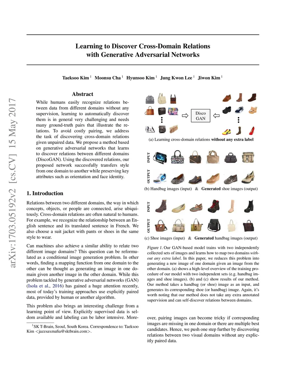 Learning to Discover Cross-Domain Relations with Generative Adversarial