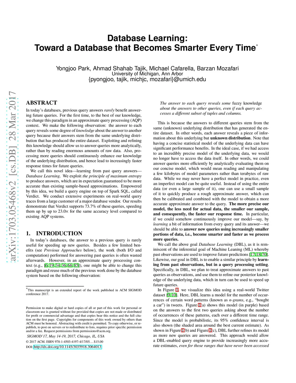 Database Learning: Toward a Database that Becomes Smarter Every Time