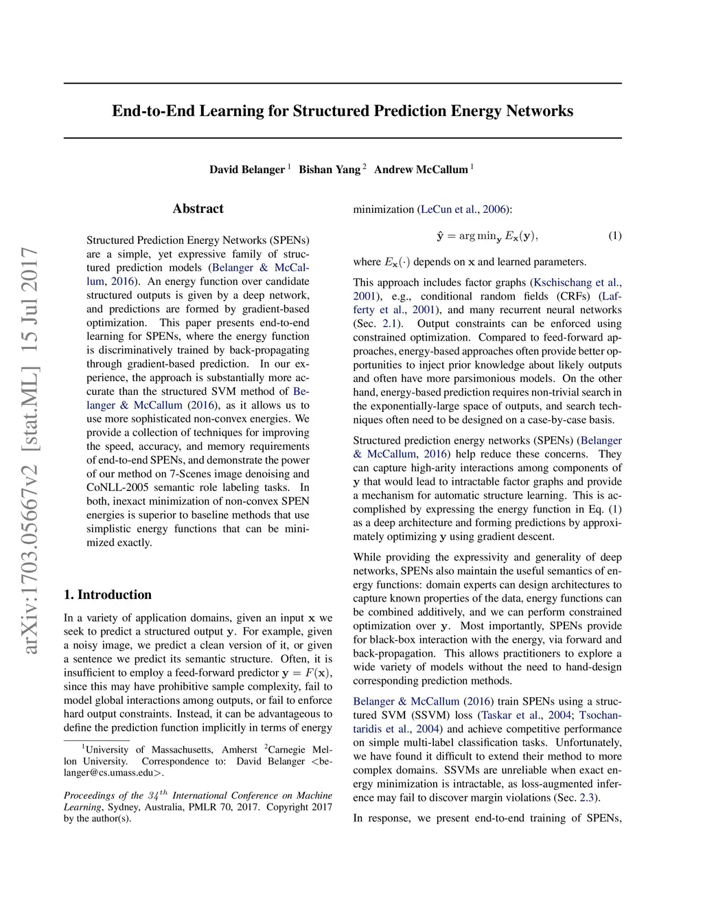 Structured Prediction Energy Networks (SPENs) are a simple, yet expressive family of structured prediction models (Belanger and McCallum, 2016). An energy function over candidate structured outputs is given by a deep network, and predictions are formed by gradient-based optimization. This paper presents end-to-end learning for SPENs, where the energy function is discriminatively trained by back-propagating through gradient-based prediction. In our experience, the approach is substantially more accurate than the structured SVM method of Belanger and McCallum (2016), as it allows us to use more sophisticated non-convex energies. We provide a collection of techniques for improving the speed, accuracy, and memory requirements of end-to-end SPENs, and demonstrate the power of our method on 7-Scenes image denoising and CoNLL-2005 semantic role labeling tasks. In both, inexact minimization of non-convex SPEN energies is superior to baseline methods that use simplistic energy functions that can be minimized exactly.