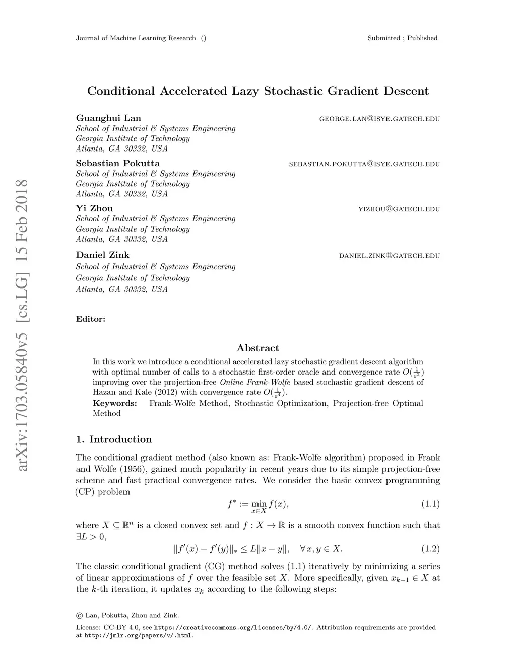 Conditional Accelerated Lazy Stochastic Gradient Descent