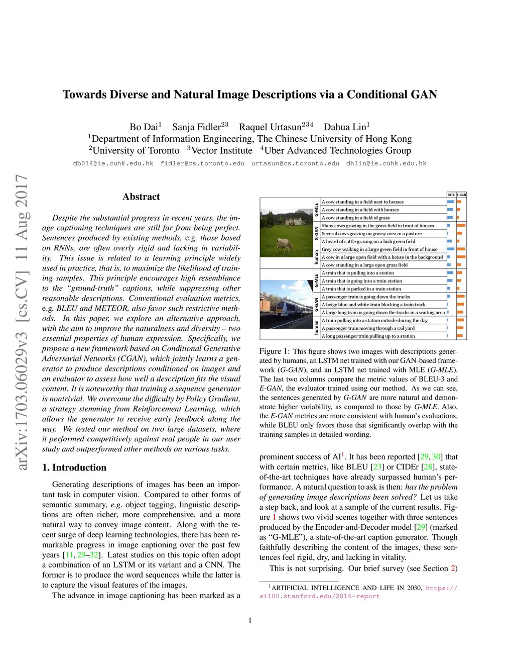 Towards Diverse and Natural Image Descriptions via a Conditional GAN