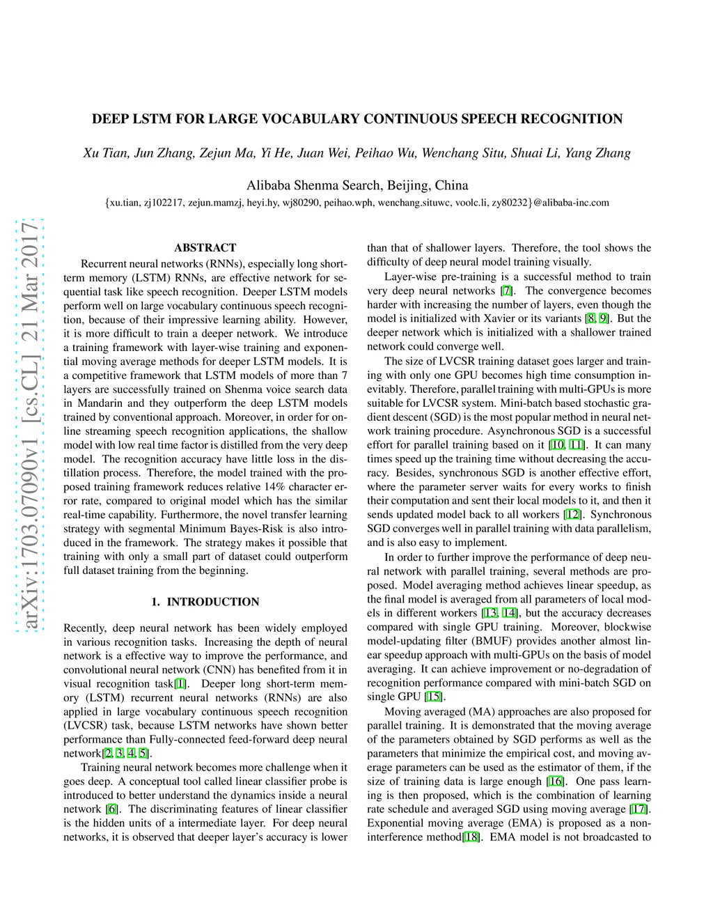 Deep LSTM for Large Vocabulary Continuous Speech Recognition