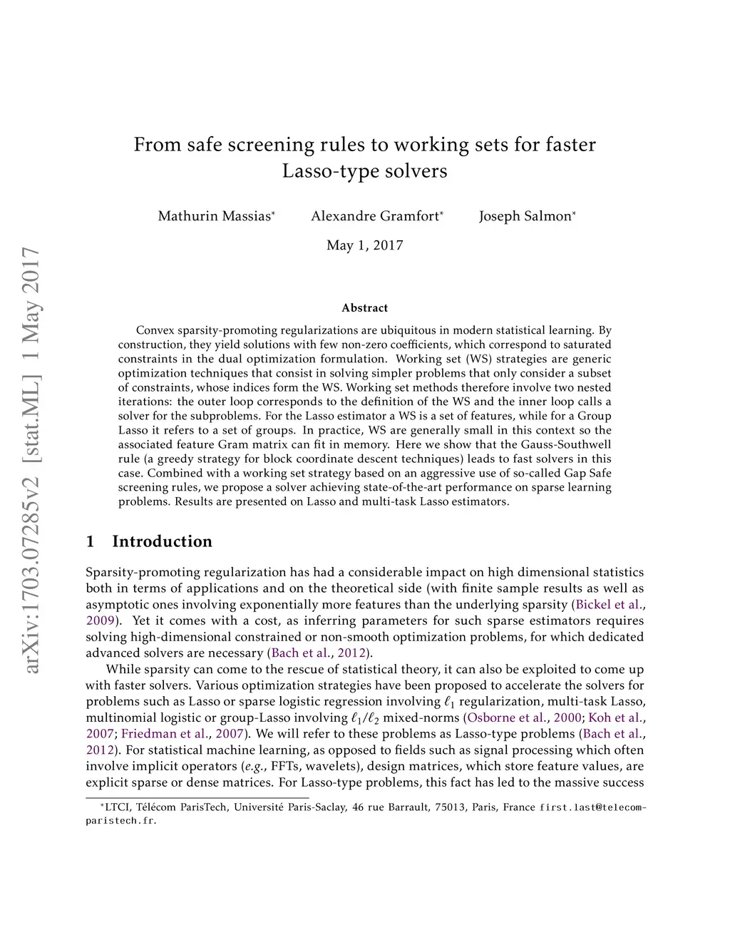 From safe screening rules to working sets for faster Lasso-type solvers