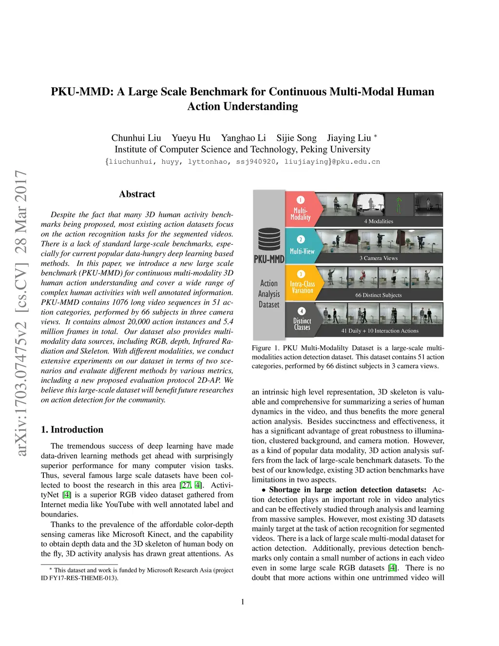 PKU-MMD: A Large Scale Benchmark for Continuous Multi-Modal Human Action