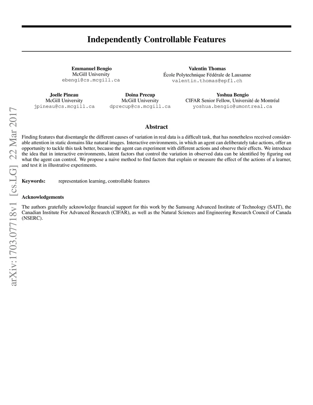 Independently Controllable Features