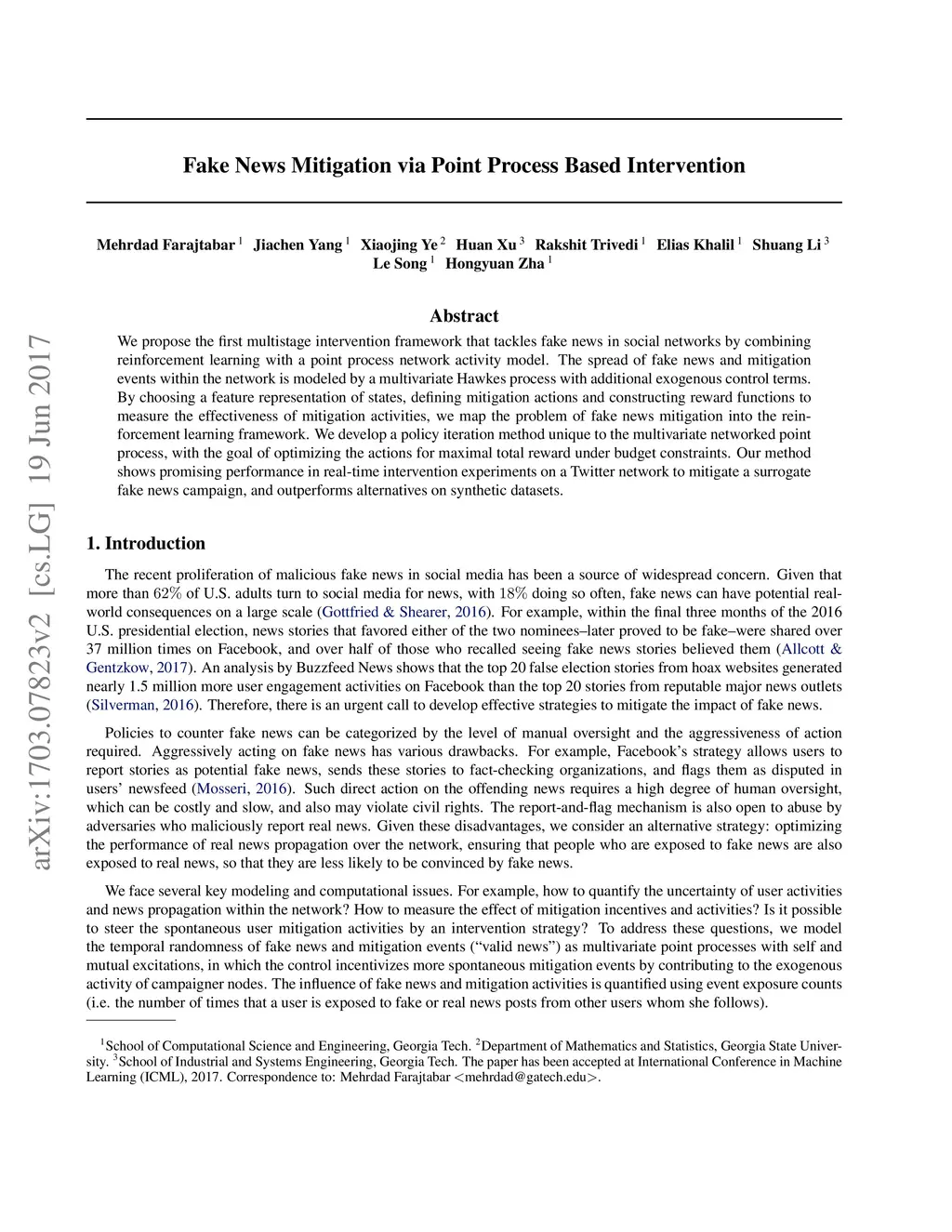 Fake News Mitigation via Point Process Based Intervention