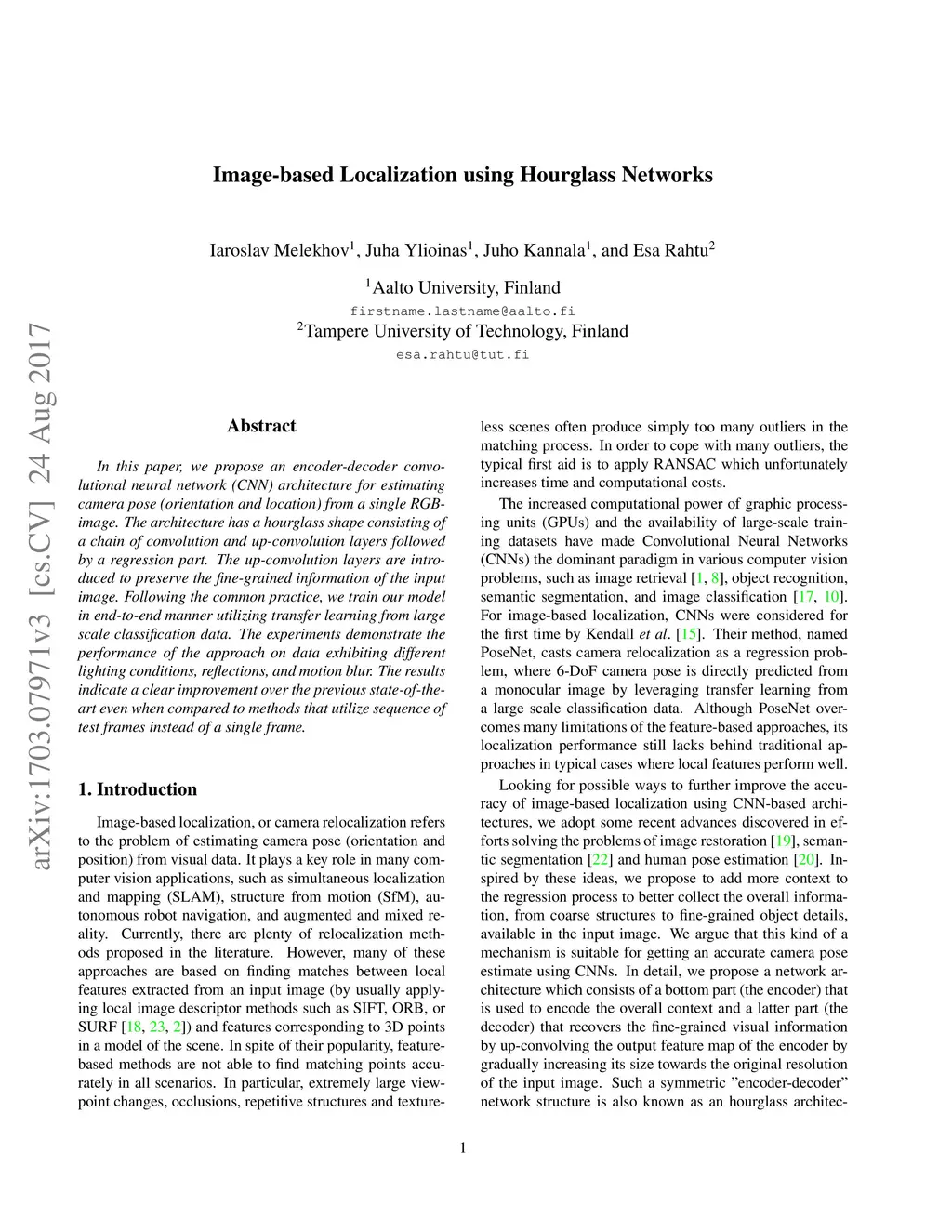 Image-based Localization using Hourglass Networks