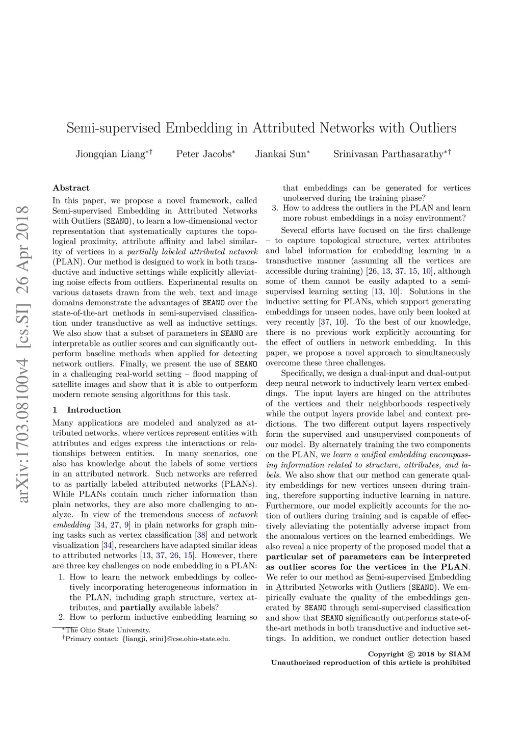 Semi-supervised Embedding in Attributed Networks with Outliers