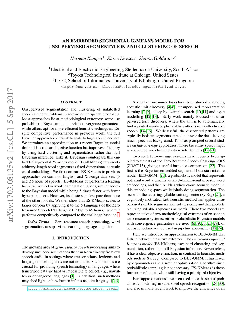 An embedded segmental K-means model for unsupervised segmentation and