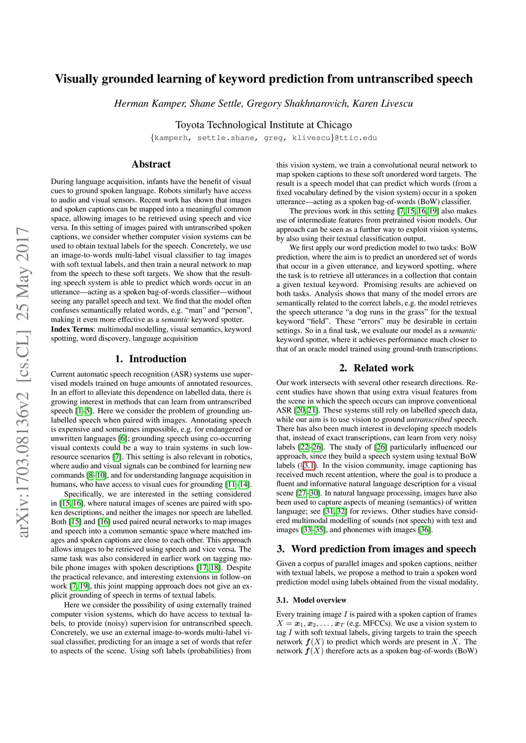 Visually grounded learning of keyword prediction from untranscribed