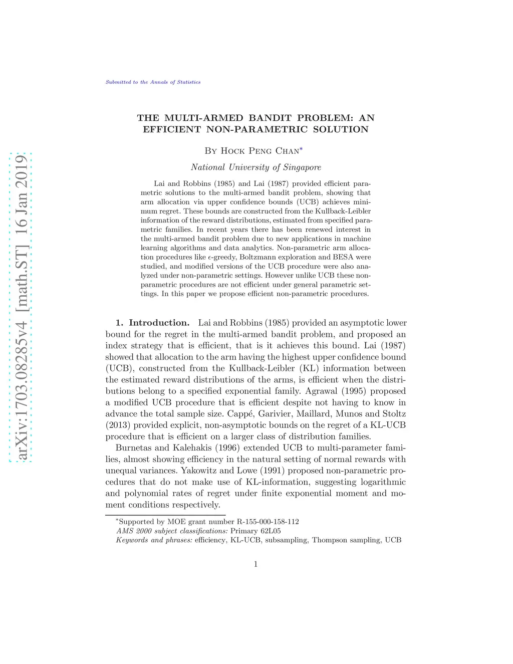 The Multi-Armed Bandit Problem: An Efficient Non-Parametric Solution