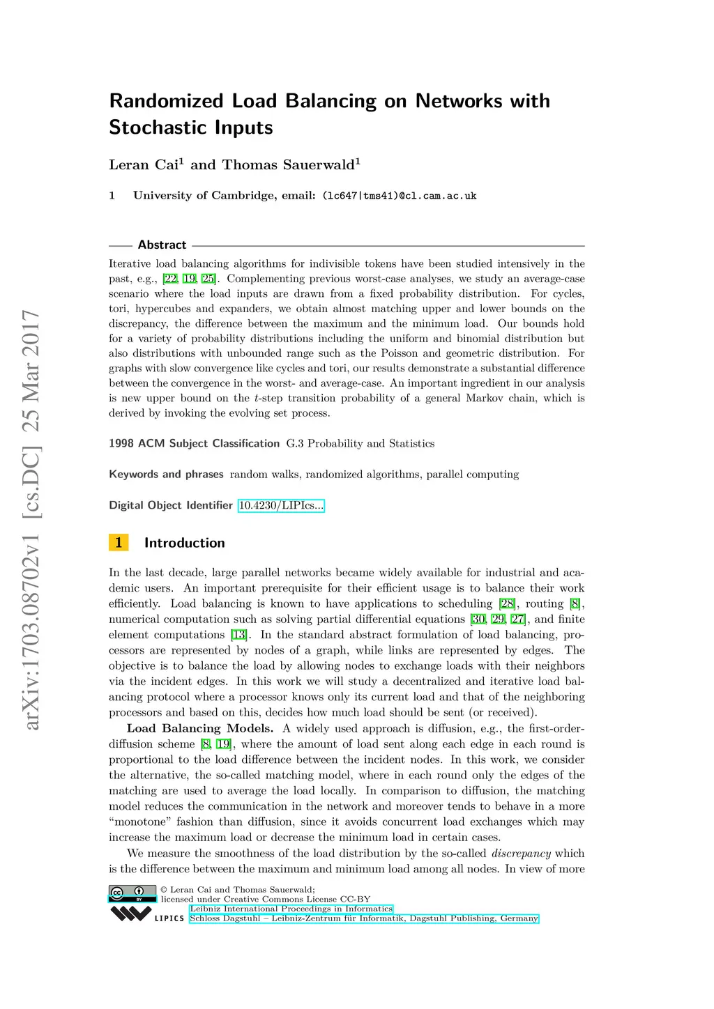 Randomized Load Balancing on Networks with Stochastic Inputs