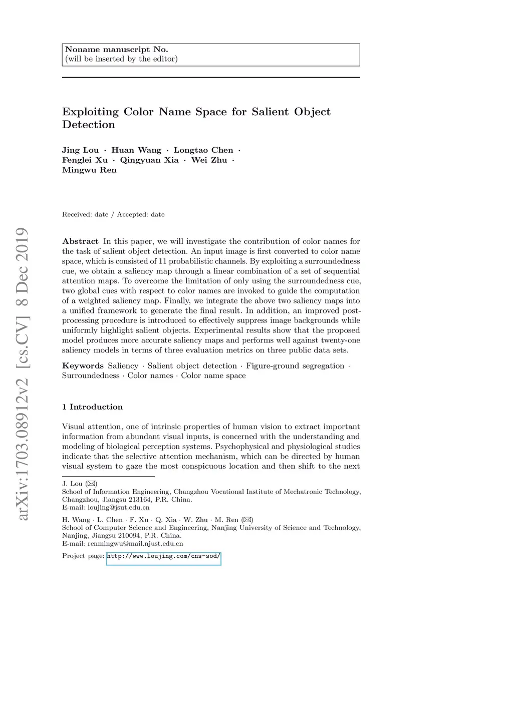 Exploiting Color Name Space for Salient Object Detection