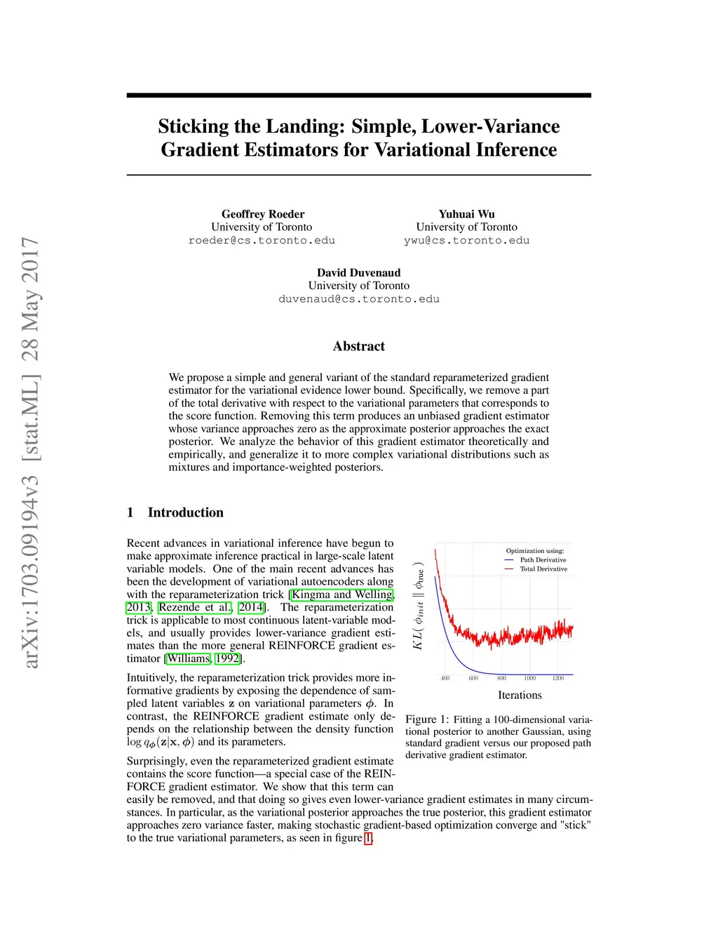 Sticking the Landing: Simple, Lower-Variance Gradient Estimators for