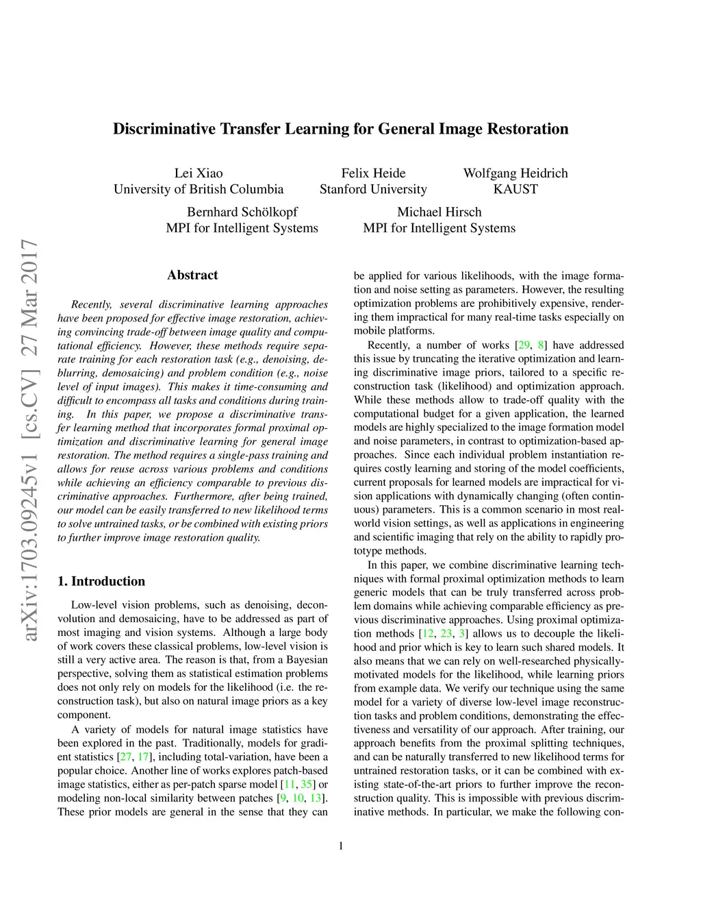 Discriminative Transfer Learning for General Image Restoration