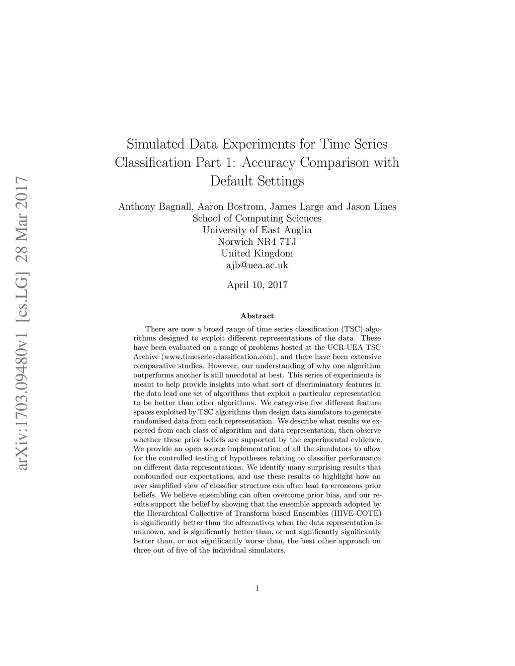 Simulated Data Experiments for Time Series Classification Part 1: