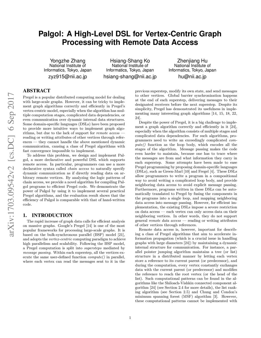 Palgol: A High-Level DSL for Vertex-Centric Graph Processing with Remote