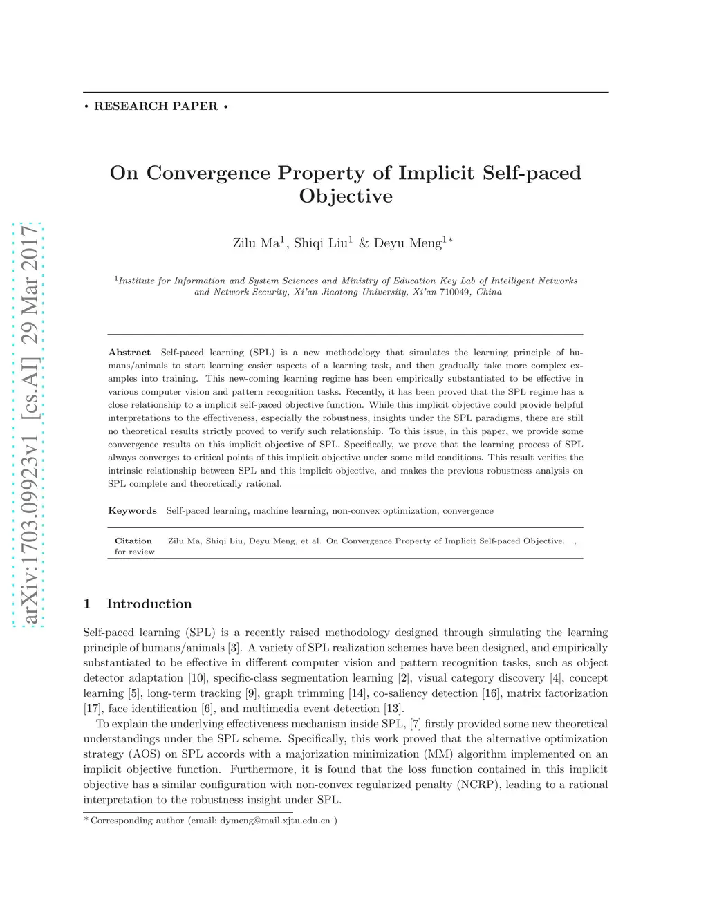 On Convergence Property of Implicit Self-paced Objective