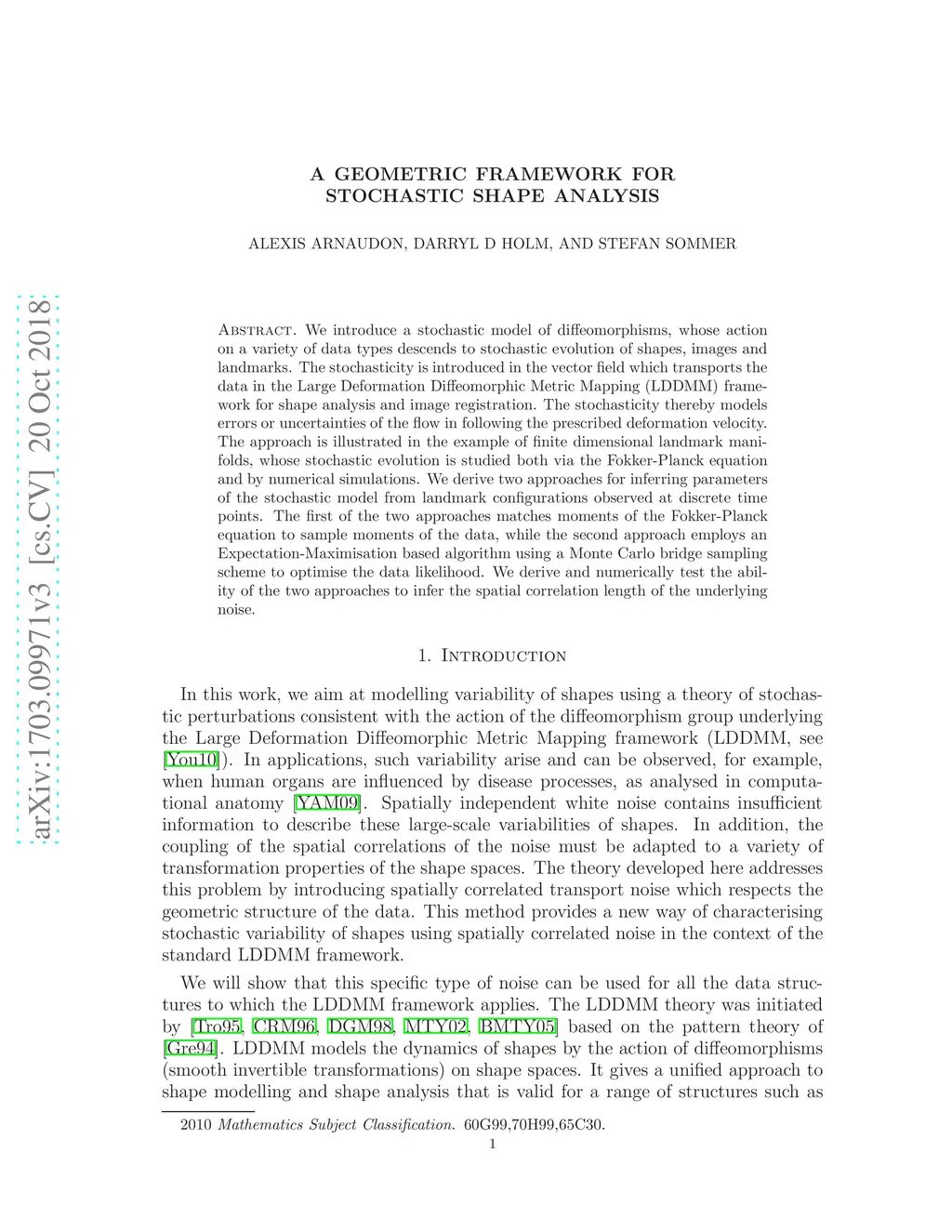 A Geometric Framework for Stochastic Shape Analysis