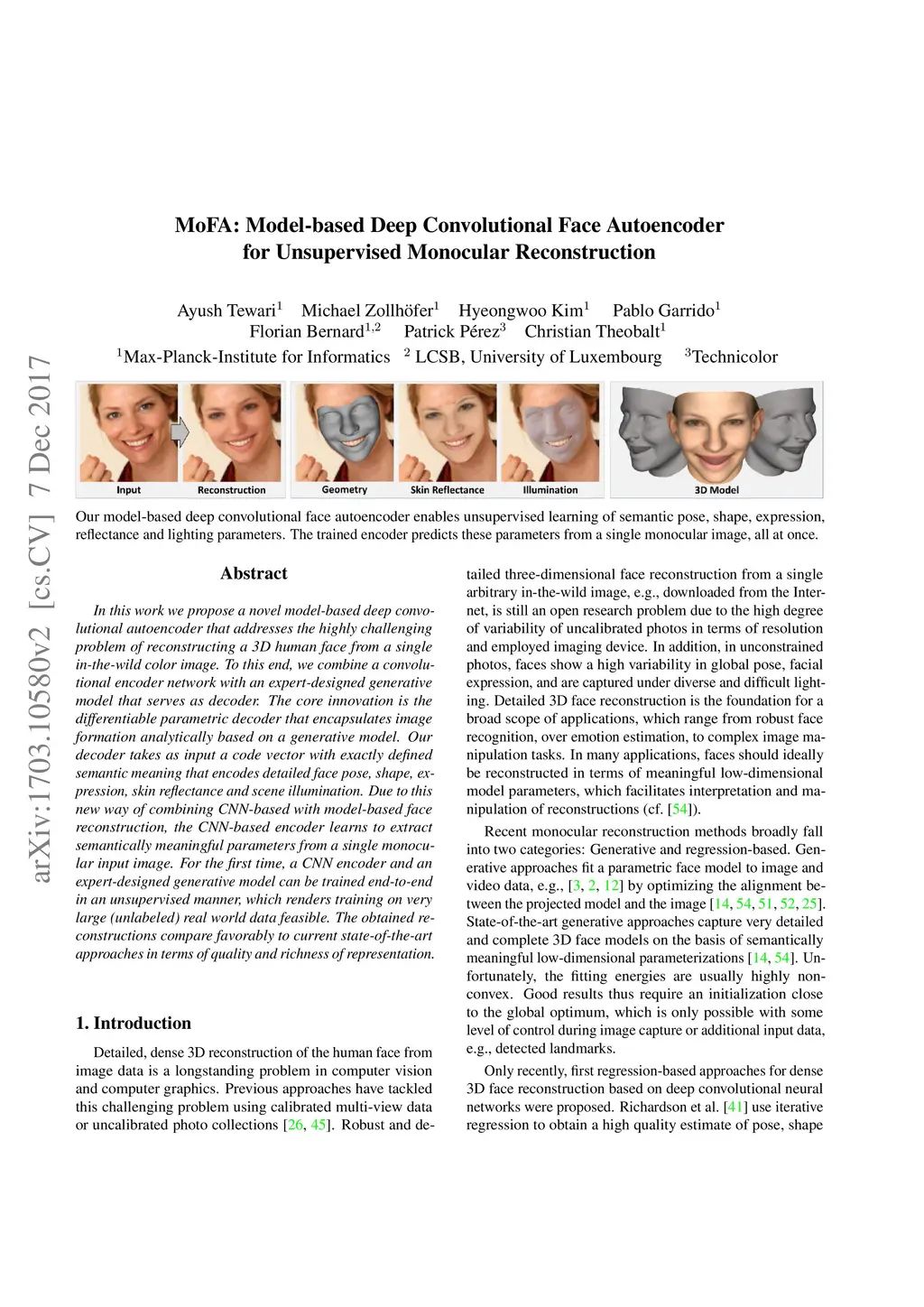 MoFA: Model-based Deep Convolutional Face Autoencoder for Unsupervised