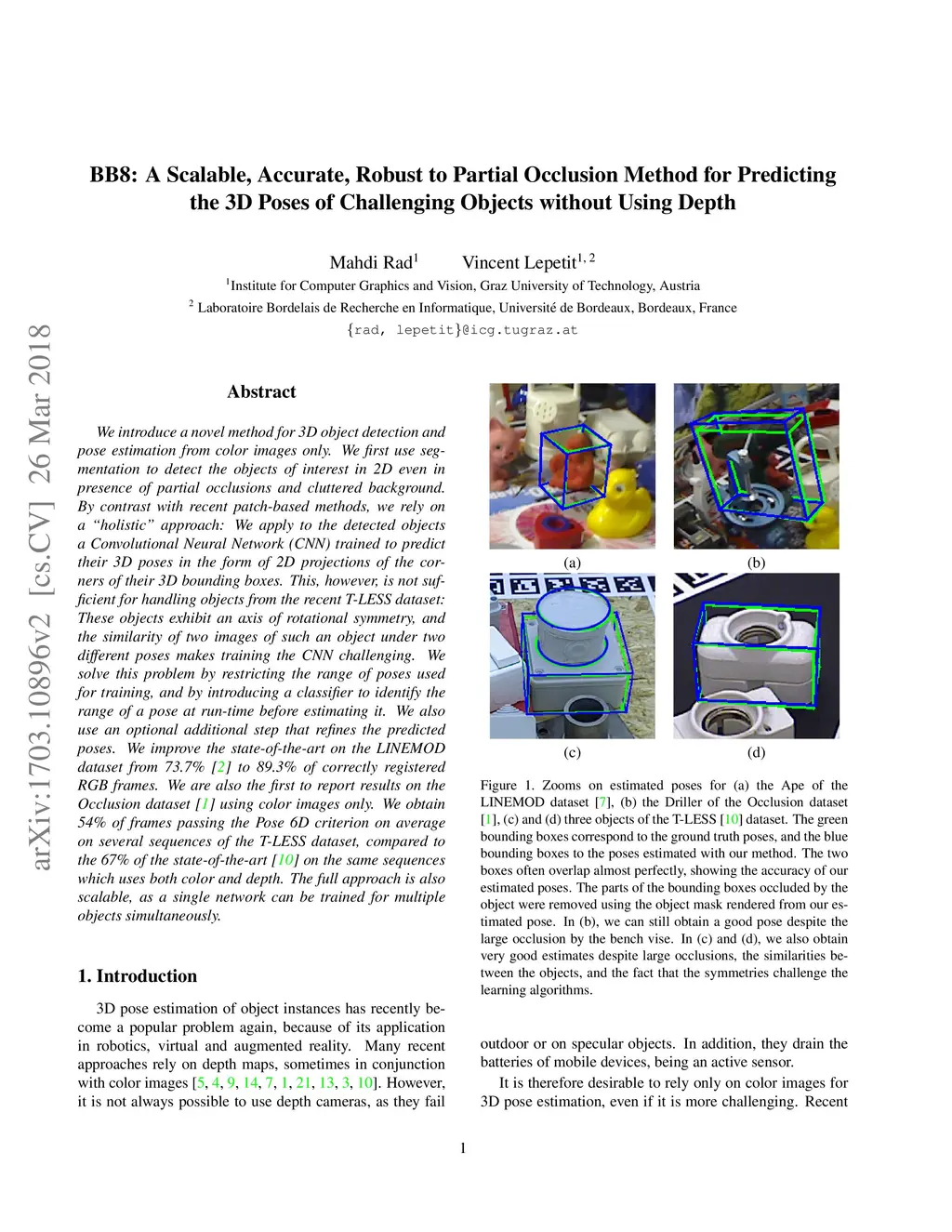 BB8: A Scalable, Accurate, Robust to Partial Occlusion Method for