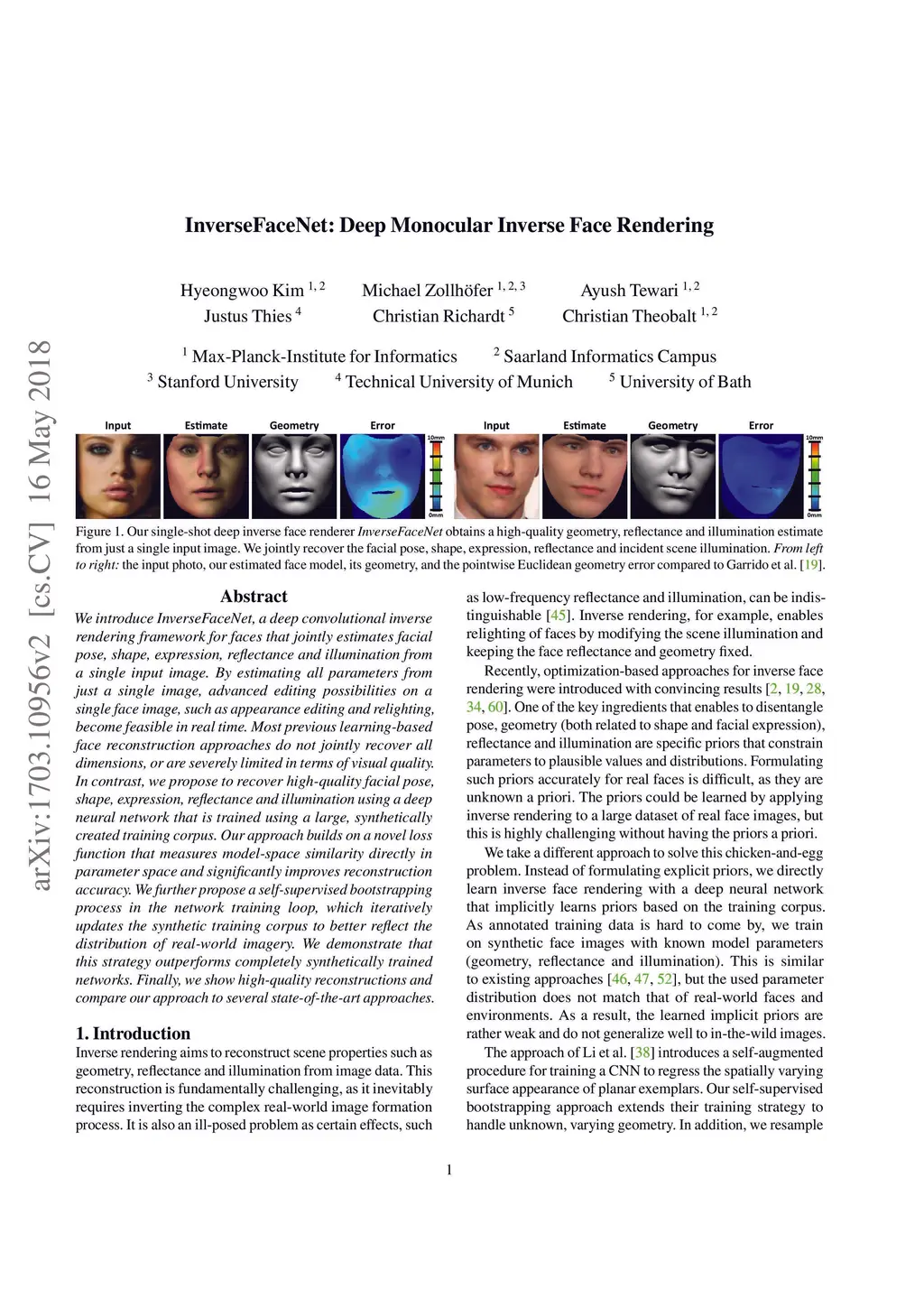InverseFaceNet: Deep Monocular Inverse Face Rendering