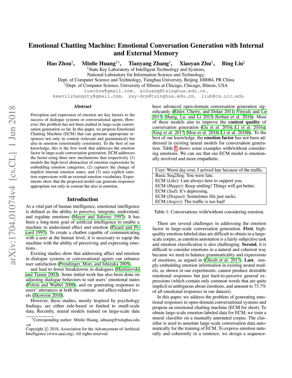 Emotional Chatting Machine: Emotional Conversation Generation with