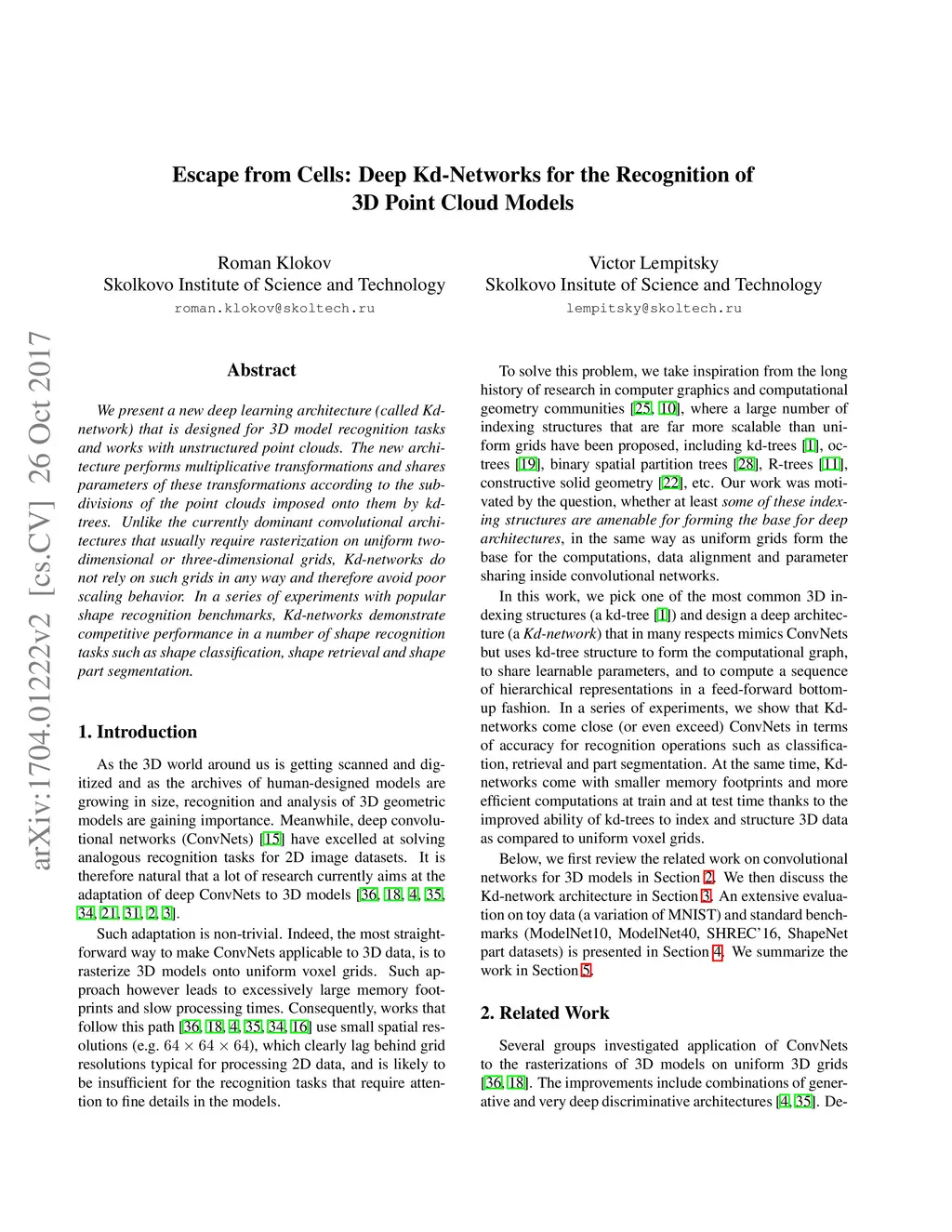 Escape from Cells: Deep Kd-Networks for the Recognition of 3D Point