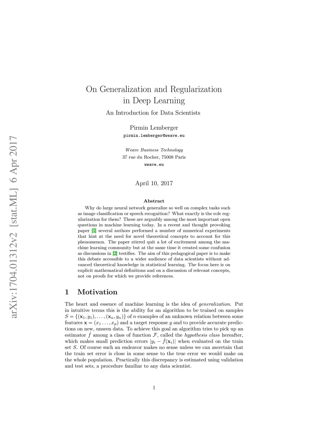 Why do large neural network generalize so well on complex tasks such as image classification or speech recognition? What exactly is the role regularization for them? These are arguably among the most important open questions in machine learning today. In a recent and thought provoking paper [C. Zhang et al.] several authors performed a number of numerical experiments that hint at the need for novel theoretical concepts to account for this phenomenon. The paper stirred quit a lot of excitement among the machine learning community but at the same time it created some confusion as discussions on OpenReview.net testifies. The aim of this pedagogical paper is to make this debate accessible to a wider audience of data scientists without advanced theoretical knowledge in statistical learning. The focus here is on explicit mathematical definitions and on a discussion of relevant concepts, not on proofs for which we provide references.