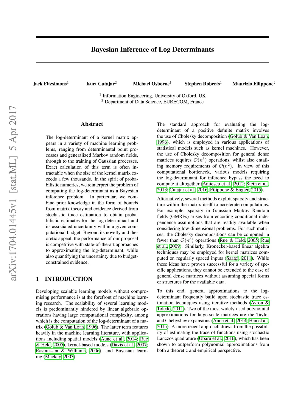 Bayesian Inference of Log Determinants
