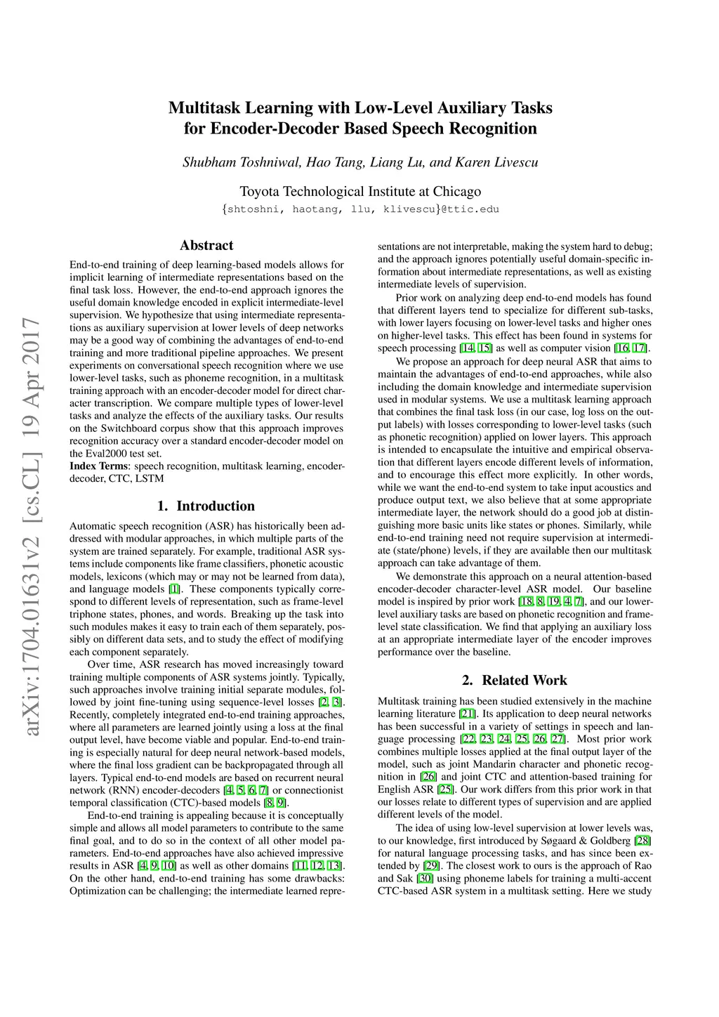 Multitask Learning with Low-Level Auxiliary Tasks for Encoder-Decoder Based Speech Recognition