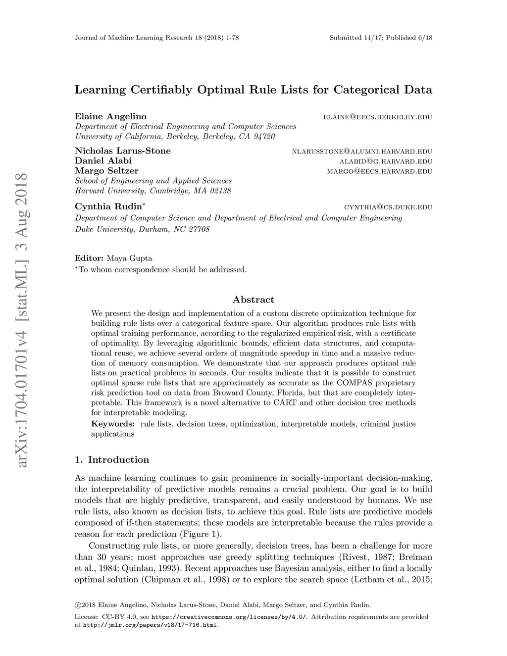 Learning Certifiably Optimal Rule Lists for Categorical Data